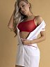 Костюм в классическом сочетании красного и белого цветов состоит из халата, лифа и чулок.