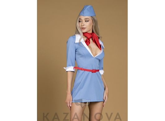 Костюм стюардессы Candy Girl - сорочка с открытой спиной, стринги, пилотка