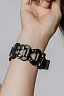 Аксессуар декорирован качественной металлической фурнитурой, регулировка происходит с помощью пряжек. В комплект к наручникам входит сцепка из металла.