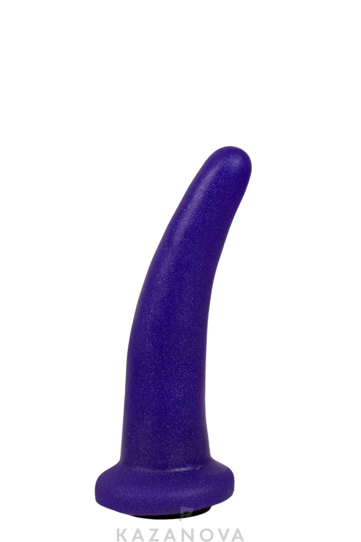 Фиолетовая насадка фиксируется на трусиках или ремнях с помощью кольца и подходит для вагинальной или анальной стимуляции.
