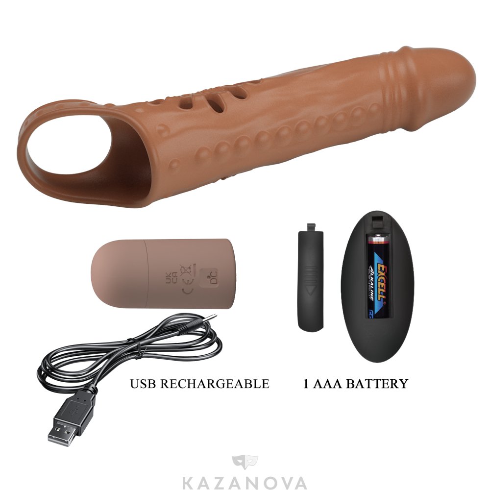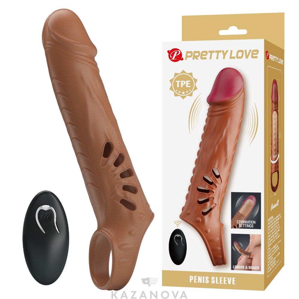 Насадка увеличивающая Pretty Love с вибрацией и ду коричневая 270W