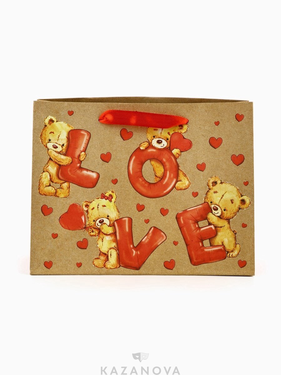 Пакет подарочный крафт «LOVE» 18×10×23 см