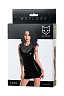 Глянцевая поверхность ткани удлиняет силуэт и скрывает недостатки фигуры. Кружевные вставки в районе декольте и спины смягчают вызывающе сексуальный образ, созданный благодаря обтягивающему материалу. В комплекте идут стринги.
