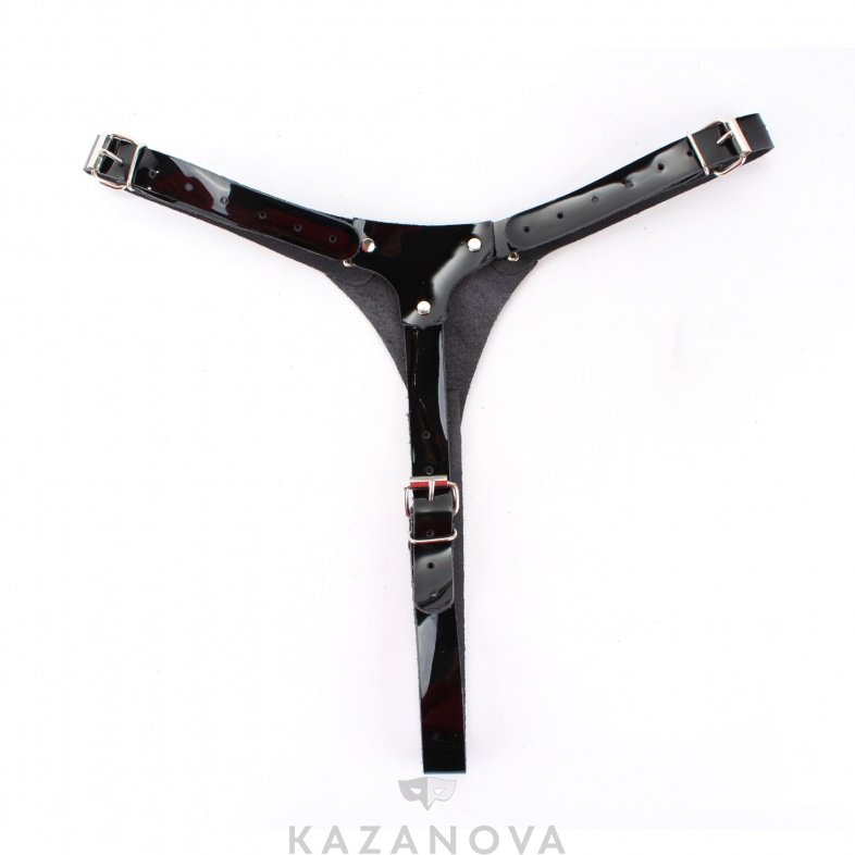 Трусики черного цвета изготовлены из натуральной кожи.