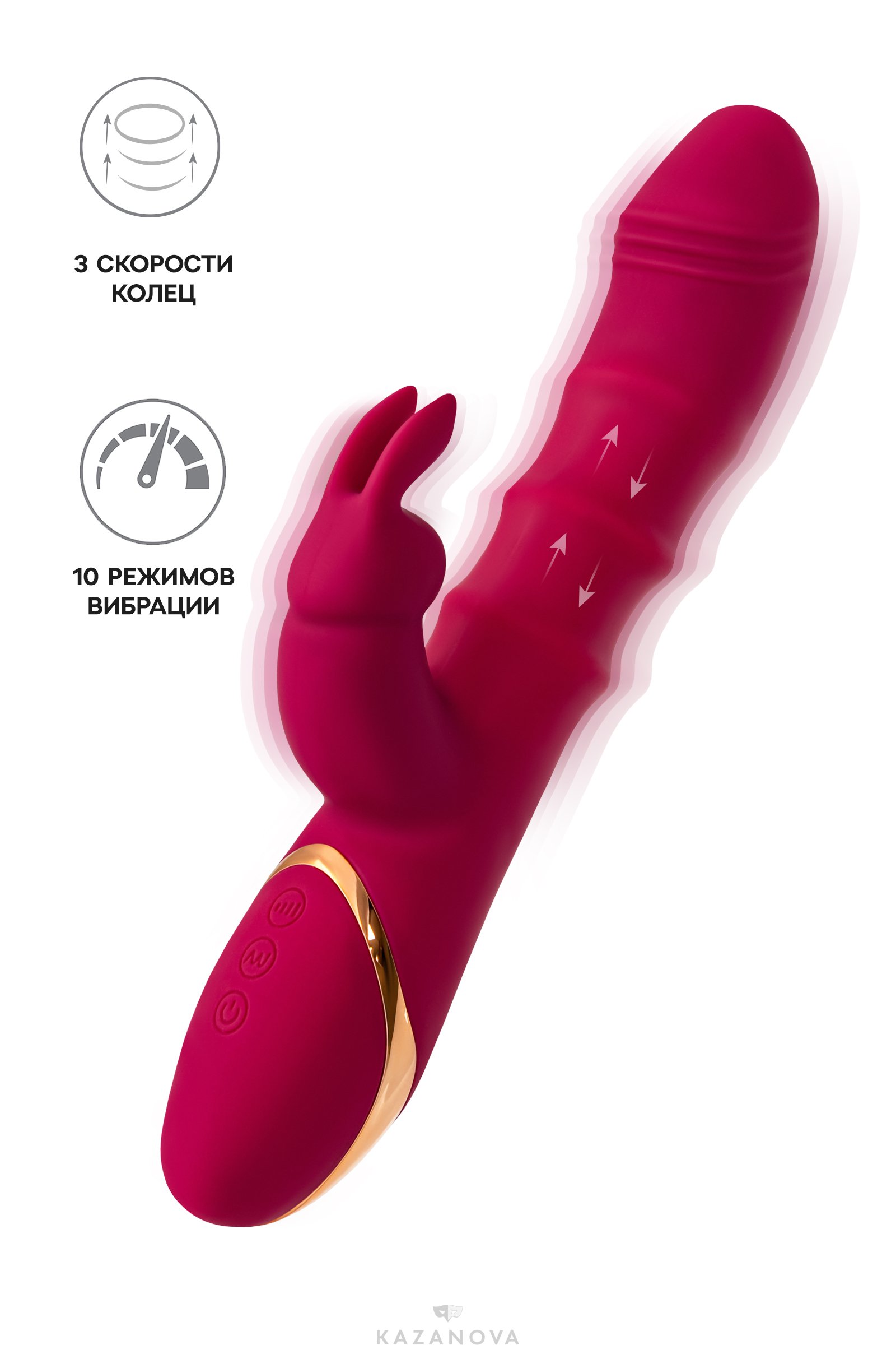 10 режимов вибрации и 3 скорости движения колец позволяют настроить игрушку под любое твое настроение — от легкой ласки до мощного феерического финала. Все ритмы удобно переключаются с помощью встроенного пульта.
