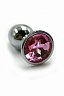 Втулка анальная Kanikule металлическая средняя серебристая с розовым стразом