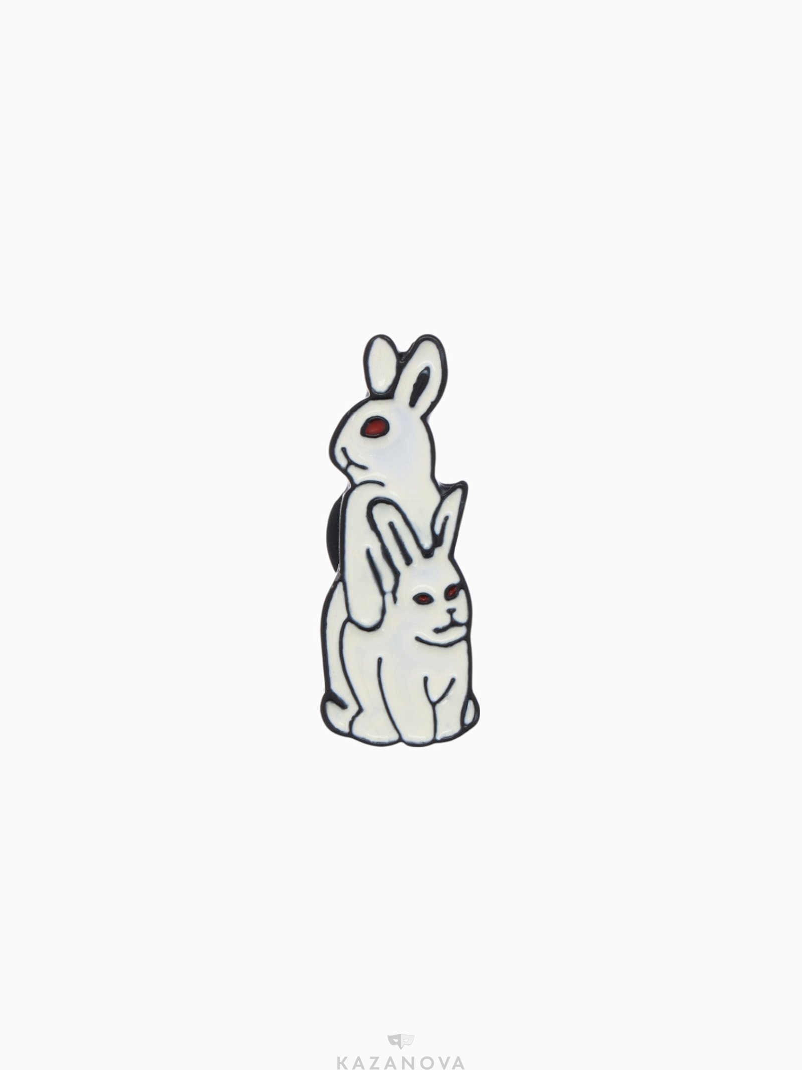Значок «Кролики» цвет белый в чёрном металле