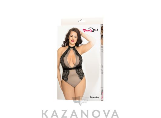 Выполнен из сетки. Лиф из кружева. В комплекте стринги.