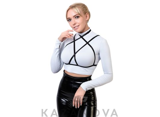 С открытой грудью. Сделано из ткани wetlook. Притягательный блеск.